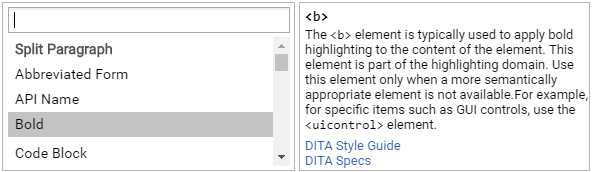 Oxygen XML Web Author includes an inline content completion assistant to help you insert and manage DITA markup without having to take your fingers off the keyboard. By default, it appears when you press the Enter key and it offers proposals that are valid at the current location within the DITA document with the most logical choices listed first. Most proposals also include a description to help you understand exactly what the particular selection will do.