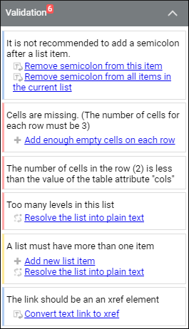 Oxygen XML Web Author also includes support for Quick Fixes that help you resolve validation issues that appear in XML documents by offering you proposals for automatically solving the issues with one click.