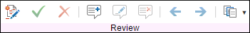 The Review toolbar contains actions to assist you with review tasks. On a desktop device, some of these actions are also available in the contextual menu.
