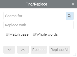 - If you select content in the editor and then invoke the Find/Replace window, the Search for field will automatically be populated with the selected content.