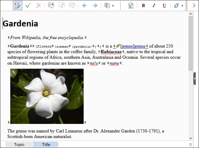 The main editing pane allows you to create, review, and edit structured content in a visual editor that is similar to common word processors. It includes a large variety of user-friendly authoring features to help even novice users work with XML content, including numerous toolbar, contextual menu, and shortcut actions, a powerful Content Completion Assistant, Smart Paste support, and validation features.